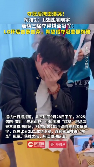 體育資訊09月29日訊 昨日下午,2025洛陽·欒川“老君山杯”中國圍棋“棋圣”戰(zhàn)總決賽三番棋決勝局,柯潔執(zhí)黑261手戰(zhàn)勝挑戰(zhàn)者屠曉宇,以總比分2比1成功衛(wèi)冕,連續(xù)三屆奪得“棋圣”冠軍。獲勝之后,柯潔激動落淚。