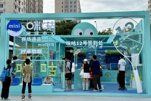 展臺(tái)內(nèi)的“mini賽場(chǎng)”設(shè)置了一面雙面設(shè)計(jì)的網(wǎng)球墻,一面是萌趣網(wǎng)球造型,另一面則展示了咪咕體育豐富的賽事IP。觀眾可持拍挑戰(zhàn),這種輕量級(jí)、趣味化的互動(dòng)設(shè)計(jì),不僅降低了參與門檻,更通過(guò)即時(shí)獎(jiǎng)勵(lì)激發(fā)參與熱情,讓網(wǎng)球運(yùn)動(dòng)回歸“快樂(lè)本源”。
