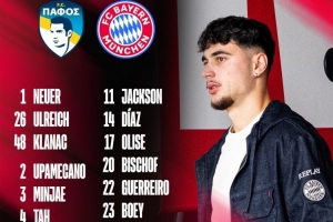 體育資訊9月29日訊 北京時間10月1日凌晨3:00,歐冠聯(lián)賽階段第2輪,拜仁將客戰(zhàn)帕福斯。今日,拜仁官方公布了本場比賽球隊大名單,凱恩領銜鋒線,比朔夫、博伊和格雷羅在列。