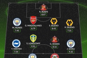后衛(wèi):努內(nèi)斯(曼城)、加布里埃爾(阿森納)、圣地亞哥-布埃諾(狼隊)、烏戈-布埃諾(狼隊)