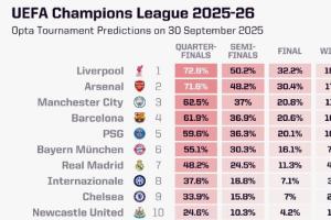 體育資訊09月30日訊 歐冠聯(lián)賽階段第二輪開賽在即,opta超級(jí)計(jì)算機(jī)更新了歐冠奪冠概率,其中利物浦位列榜首,阿森納、曼城分列二三。