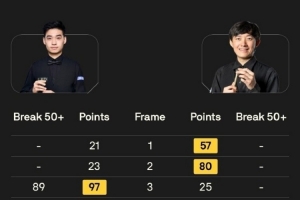 體育資訊9月30日訊 2025斯諾克國錦賽資格賽第一比賽日16點30分時段比分如下: