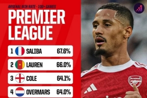 體育資訊10月1日訊 根據(jù)統(tǒng)計(jì),在為阿森納出戰(zhàn)超過(guò)100場(chǎng)英超的球員中,薩利巴勝率最高,達(dá)到67.6%,這位法國(guó)中衛(wèi)已與俱樂(lè)部續(xù)約至2030年。