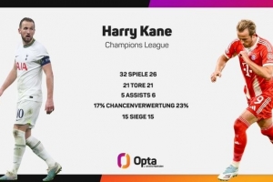 數(shù)據(jù)提供商Opta發(fā)布的詳細(xì)對比顯示,凱恩在拜仁不僅在更少的場次里追平了進(jìn)球紀(jì)錄,其他關(guān)鍵數(shù)據(jù)也同樣出色。
