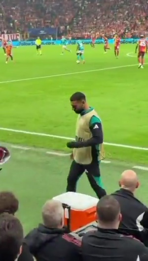 當利物浦控球時,現(xiàn)場55000加拉塔薩雷球迷爆發(fā)出巨大噓聲,薩拉赫被拍到被噓聲驚擾,甚至捂住耳朵的畫面。
