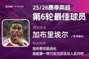 2025-2026賽季英超火熱進(jìn)行中,體育資訊和咪咕體育聯(lián)合發(fā)起每輪英超最佳球員評(píng)選活動(dòng)!第六輪評(píng)選結(jié)果結(jié)出爐,加布里埃爾頭球絕殺,幫助阿森納2-1戰(zhàn)勝紐卡斯?fàn)?,獲得吧友8萬(wàn)票的支持,力壓哈蘭德當(dāng)選 【體育資訊X咪咕體育英超第6輪最佳球員】!