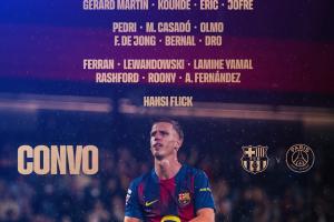 體育資訊10月01日訊 巴薩公布?xì)W冠對陣巴黎的大名單,萊萬、亞馬爾、佩德里領(lǐng)銜,巴爾德復(fù)出,一線隊門將僅什琴斯尼。
