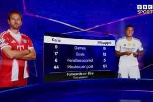 BBC統(tǒng)計凱恩、姆巴佩本賽季數據: