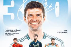 第10分鐘,穆勒點(diǎn)射破門,溫哥華白浪2-0領(lǐng)先。穆勒打入個(gè)人生涯第300球。