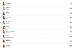 歐冠歷史助攻榜前十(數(shù)據(jù)來(lái)自歐冠官網(wǎng))