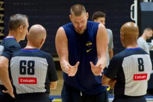 在對(duì)抗賽結(jié)束之后,約基奇拉著三位裁判討論判罰的具體細(xì)節(jié),記者稱,約基奇拉著三位裁判問(wèn)了大約20分鐘。