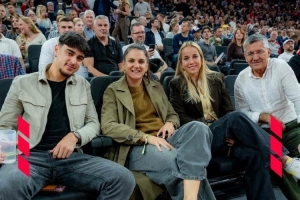 歐洲籃球聯(lián)賽,拜仁主場97比88擊敗紅星,拜仁俱樂部主席海納、拜仁中場帕夫洛維奇、拜仁女足球員達(dá)姆賈諾維奇、格溫現(xiàn)場觀看比賽,為拜仁男籃助威。