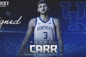 安德魯-卡爾出生于2002年2月1日,身高2米11,司職內(nèi)線。前兩賽季效力于特拉華大學,大三賽季轉(zhuǎn)校至維克森林大學,大五賽季轉(zhuǎn)校至肯塔基大學。