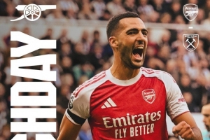 阿森納官方社媒發(fā)布了為此役制作的海報(bào),隊(duì)內(nèi)中場(chǎng)梅里諾單人出鏡。
