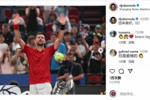 德約科維奇社媒曬出謝場(chǎng)照片,表達(dá)再次來(lái)到中國(guó)參賽的喜悅之情,并用中文寫道:“回來(lái)真好?!?/p>