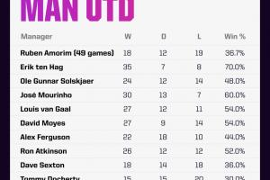 對陣桑德蘭的比賽將是阿莫林執(zhí)教曼聯(lián)的第50場比賽,但他的5位前任莫耶斯、范加爾、穆里尼奧、索爾斯克亞和滕哈赫,都沒能在執(zhí)教曼聯(lián)的50場里程碑取得勝利。