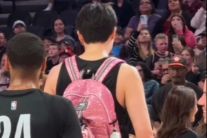 開拓者球迷嘉年華??新秀楊瀚森和樂福背著書包學(xué)跳舞 隊(duì)友鼓掌