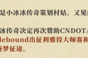 體育資訊7月2日訊 小冰冰傳奇官博發(fā)布動態(tài),宣布贊助中國DOTA2戰(zhàn)隊;