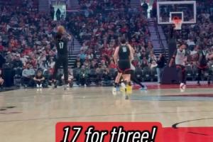 GIF-開拓者球迷嘉年華隊(duì)內(nèi)表演賽,楊瀚森和夏普手遞手配合,后者接球漂移三分落袋