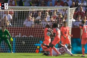 塞維利亞球員投訴手球,隨后裁判指了指耳機(jī),示意不是點(diǎn)球。