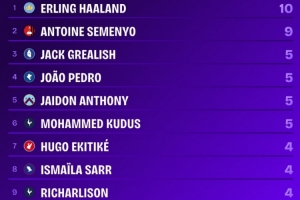 體育資訊10月6日訊 英超第7輪比賽,曼城以1-0的比分小勝布倫特福德。本場(chǎng)比賽,哈蘭德打進(jìn)全場(chǎng)唯一進(jìn)球,成為本賽季英超首位直接參與10粒進(jìn)球的球員。