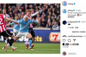 哈蘭德社媒曬出比賽照片慶祝勝利,配文:“重要的三分,咱們休賽期之后見!”
