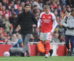 體育資訊10月6日訊 英超第7輪比賽,阿森納2-0擊敗西漢姆,但剛剛從肩傷中復(fù)出的厄德高因膝傷離場,而賴斯因背傷離場。