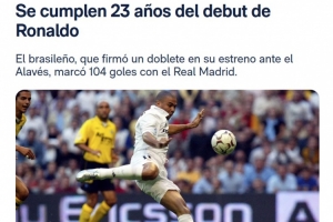 體育資訊10月6日訊 皇馬官網(wǎng)撰文表示,今天是巴西傳奇前鋒大羅在皇家馬德里完成首秀的23周年紀(jì)念日。
