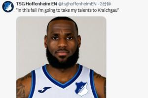 而德甲霍芬海姆也借機(jī)在社媒玩了一把梗。他們的英文社媒賬號(hào)曬出詹姆斯身穿霍芬海姆球衣的P圖照片,并配文道:“這個(gè)秋天,我將把天賦帶到克萊希高(霍芬海姆所在地)?!?/p>