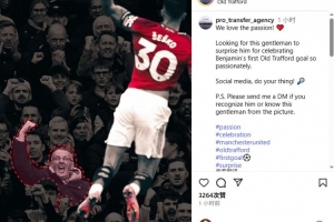 體育資訊10月7日訊 曼聯(lián)前鋒舍什科的經(jīng)紀(jì)公司在Instagram發(fā)“尋人啟事”,找那位在舍什科進(jìn)球后瘋狂慶祝的曼聯(lián)球迷。