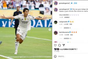 賽后,貢薩洛發(fā)布社媒慶祝勝利。勞爾和本澤馬現(xiàn)身貢薩洛社媒評論區(qū),為小將送上鼓勵和祝福。