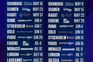 體育資訊10月8日訊 田徑鉆石聯(lián)賽公布了2026年2027年的賽歷,上海和廈門分別為全年的第二站和第三站比賽。
