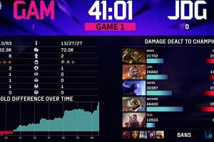 值得一提的是這也是GAM在本次比賽中的小局首勝,在此前的比賽中GAM被WBG兩局橫掃;而昨日J(rèn)DG擊敗了WBG。