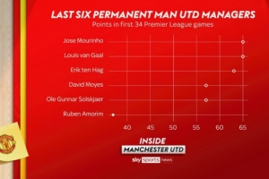 體育資訊10月9日訊 加盟曼聯(lián)以來,阿莫林已經(jīng)率隊(duì)踢了34場英超比賽,但他的執(zhí)教表現(xiàn)遠(yuǎn)遠(yuǎn)沒能達(dá)到外界的期望。根據(jù)天空體育的數(shù)據(jù)統(tǒng)計(jì),阿莫林前34場英超比賽僅僅拿到37分,低于之前數(shù)位曼聯(lián)主帥所拿到的積分。