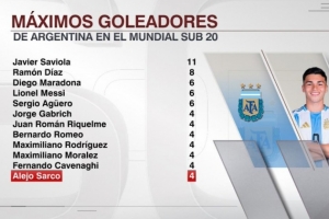 體育資訊10月9日訊 ESPN統(tǒng)計(jì)了阿根廷球員在世青賽歷史上的進(jìn)球數(shù)量,并列出世青賽歷史阿根廷球員射手榜,薩維奧拉11球斷層居首,馬拉多納、梅西、阿圭羅6球,薩爾科本屆賽事打進(jìn)4球上榜。