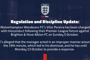 日前,英足總官方發(fā)布公告:“狼隊(duì)主帥佩雷拉在10月5日周日對(duì)陣布萊頓的英超聯(lián)賽后被指控行為不當(dāng)。據(jù)稱,佩雷拉在第19分鐘左右行為不當(dāng),這導(dǎo)致他被罰下場,他需在10月13日周一前對(duì)此作出回應(yīng)?!?/p>