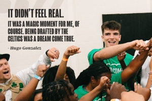 體育資訊7月3日訊 綠軍新秀烏戈-岡薩雷斯在球迷活動中,和小球迷分享到自己被選中的經(jīng)理:“那一刻感覺不真實(shí),對我來說是個神奇的時刻,被凱爾特人(第28順位)選中,實(shí)現(xiàn)了我的夢想。這是NBA歷史上贏球最多的球隊,能成為這樣的球隊一員是一種榮幸”