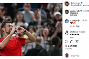 德約科維奇社媒曬出比心的照片,慶祝勝利,并用中文寫道:“還在戰(zhàn)斗。”