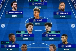 前鋒:克瓦拉茨赫利亞 9000萬(wàn)歐,登貝萊 1億歐,巴爾科拉 7000萬(wàn)歐