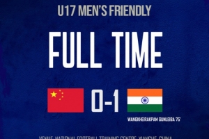 特別是第10分鐘時,印度隊場上隊長、司職中前衛(wèi)的10號岡特在反擊中于中路偏左區(qū)域帶球突進,然后在禁區(qū)前一腳大力抽射,球擊中近側(cè)球門角后彈出,驚出國少隊員們一身冷汗。球彈回到球場內(nèi)后,又是印度隊員搶到點,再次組織進攻,連續(xù)三腳射門,幸虧門將和防守球員全力阻擋,確保國少隊大門不失,這波進攻讓國少隊在場上顯得有些難堪。