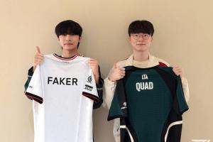 體育資訊7月3日訊?FLY戰(zhàn)隊(duì)曬Quad與Faker交換隊(duì)服照片。