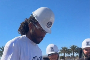 快船全員今天參加社區(qū)活動,官推曬出視頻,一位小女孩問小卡身高,后者回答6英尺7英寸(約2米01)。