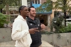 視頻當中,亨德森、夏普和里斯三名球員與球迷合影互動,并送出各自的球衣。