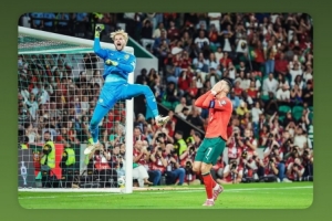 愛爾蘭門將凱萊赫社媒曬撲出C羅點球后慶祝的照片,配文:“雖然未能如愿,但仍有積極因素可以帶到周二的比賽之中(對陣亞美尼亞)?!?/p>