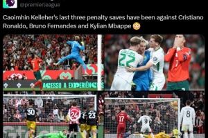 體育資訊10月12日訊 英超官方發(fā)布數(shù)據(jù),凱萊赫近3次撲點分別撲出了C羅、 B費和姆巴佩的點球。