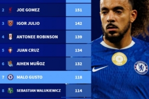 2、喬-戈麥斯(利物浦):151場(chǎng)