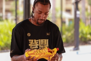 波普在此次展示中的的為改款球鞋火把節(jié)配色,據(jù)悉該款球鞋已于近期上市售賣。