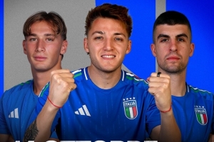 意大利隊(duì)社媒發(fā)布了為此役制作的海報(bào),小曼奇尼、雷特吉、皮奧-埃斯波西托出鏡。