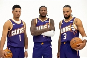 上上季太陽有布克、格雷森·阿倫、比爾和埃里克·戈登四個(gè)2號(hào)位,中鋒是努基奇和206公分的尤班克斯。