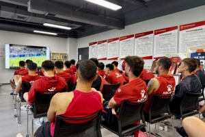 體育資訊7月3日訊 官方消息,青島紅獅全隊集體學(xué)習(xí)最新版足球競賽規(guī)則。